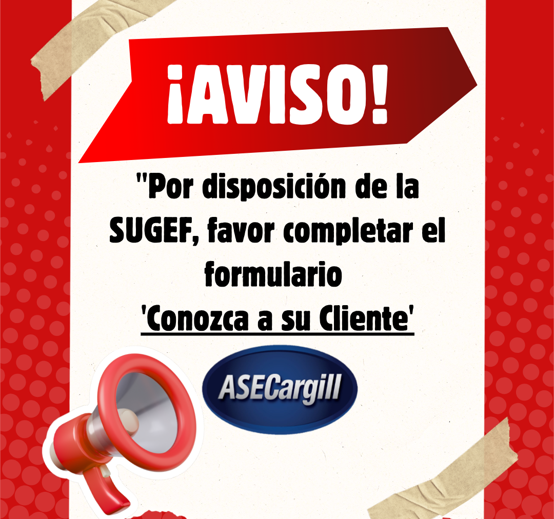 Por disposición de la SUGEF, favor completar el formulario 'Conozca a su Cliente' y enviarlo firmado por ambos lados a: